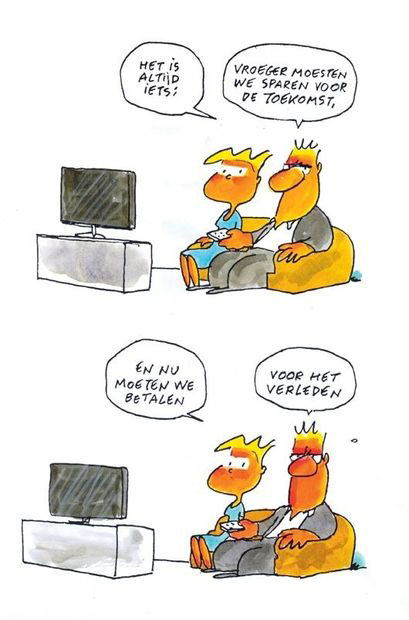 Translation: "It's always something ... in the past we had to save for the future... and now we have to pay ... for the past."