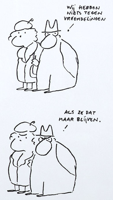 Translation: "We have nothing against strangers [immigrants]. As long as they stay strangers."
