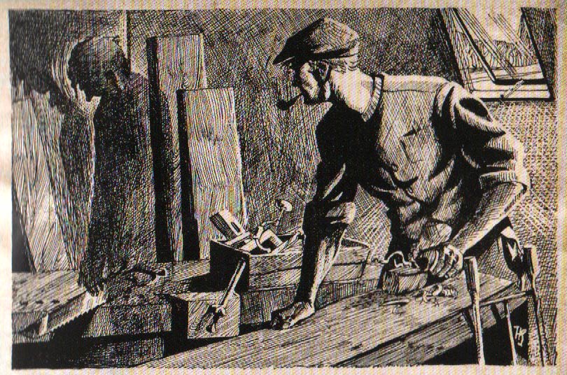 During World War II, both Kabos, Toonder and other co-workers got involved with Dick van Veen and Jo Pellicaan's illegal printing company D.A.V.I.D. and its magazine Metro. They operated from a so-called "second division" of the Toonder Studios in the Amsterdam Spuistraat. D.A.V.I.D. printed illegal papers like Vrij Nederland, Het Parool and Trouw, but also booklets for the publishing company De Bezige Bij. Kabos designed the printer's logo and provided illustrations for several of their publications, often under the pseudonym Karel Woud. Most notable was Jan Gerhard Toonder's booklet 'Keukenkrabbels' (1945), followed after the war by 'Geef Ons Heden Ons Dagelijks Brood' (De Suijckermoolen, 1946). Both books expressed in words and images the Dutch despair and anger of the war years, and especially the Hunger Winter.