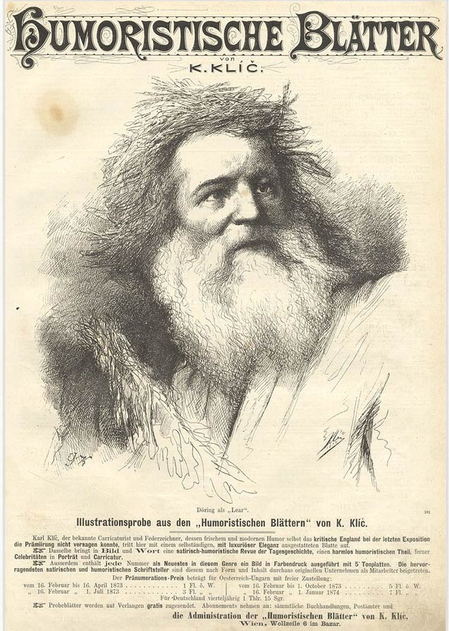 In 1863, Klíč founded his own lithography store in Prague, but there was too much competition. As a result, he moved to Brno, where he established his own photo studio, called Rafael. While this business proved to be far more lucrative, Klíč still preferred to be an artist. In 1866, he left the company to his relatives and moved to Budapest, capital of Hungary, where he started a graphic career. Klíč created his own bi-weekly satirical magazine Veselé listy, but once again he offended too many people which led to it being shut down. The plus side about this was that he at least got noticed in the local press. As a result, his cartoons were published in the Hungarian magazine Kulihrášek and the Viennese paper Der Floh. In 1869, he moved to Vienna. In 1872, Klíč launched a new satirical magazine, Humoristische Blätter, which managed to stay in print until 1900. Apart from his work as a cartoonist, he also gained a reputation as a portrait painter. Among the celebrities who posed for him were Italian politician Giuseppe Garibaldi and Czech politician František Palacký, both considered fathers of their respective nations.