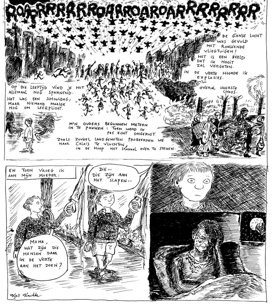 Fragment of Kjell Knudde's autobiographical comic about his grandfather's World War II anecdotes, posted on Facebook on 30 May 2024.