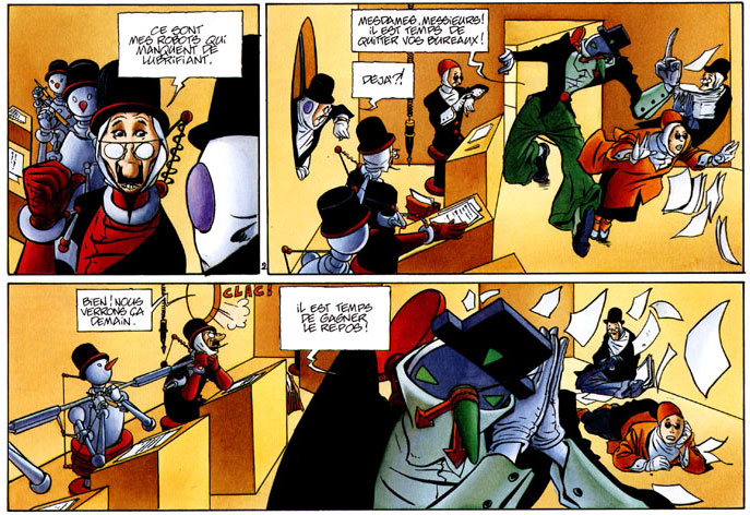 In 2004 and 2006, Lebeault and writer Denis-Pierre Filippi published the diptych 'Le Croquemitaine' in the Dupuis Aire Libre collection. In both 'Horlogiom' and 'Le Croquemitaine', Lebeault creates fictional and Orwell-like societies, where the heroes resemble characters of popular 19th-century serials. In 2008 he also showcased his interest in 19th century literature with the Fantomas-tribute 'Le Mangeur d'Histoires', that was also published by Dupuis. Lebeault is additionally the author of the children's comic 'Félix', that was published by Delcourt Jeunesse in 2001.
