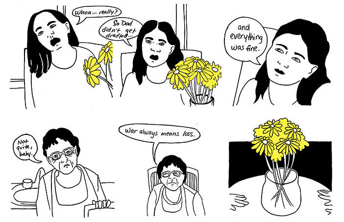 Amara Leipzig is an American printmaker, bookmaker and cartoonist who self-publishes her comics and books. She was born in Los Angeles, and attended the Art Institute of Chicago, where she graduated in 2013. She has self-published short stories like 'Yizkor', 'Highgate Cemetery', 'West' and 'Flash', but also the ongoing work 'The Ruins'. Her work has been featured in the 'Cake 14' and 'Awkward Sex' anthologies. Leipzig also made an anthology comic based on the discography of the band Queen, called 'Killer Queen', for Red Stylo Media.