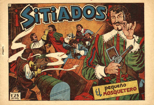 Throughout the 1950s and 1960s Longarón continued to work for the mainly landscape format-shaped comic books published by Ediciones Toray in Barcelona, training his skills under Toray's lead artist Boixcar. He drew stories in several genres, but was a regular in the publisher's war title 'Hazañas Bélicas' (1950-1958) and the historical series 'El Pequeño Mosquetero' (1951) and 'Narraciones y Aventuras de Davy Crockett' (1958-1959). Other Toray titles with Longarón interior art were 'Selecciones de Aventuras' (1950), 'Brick el Indomable' (1951), 'El Mundo Futuro' (1955) and 'Hombres de Accion' (1959). He additionally drew issues for the buccaneer comic book 'El Caballero Negro' (1950), published by A. Fabregat.