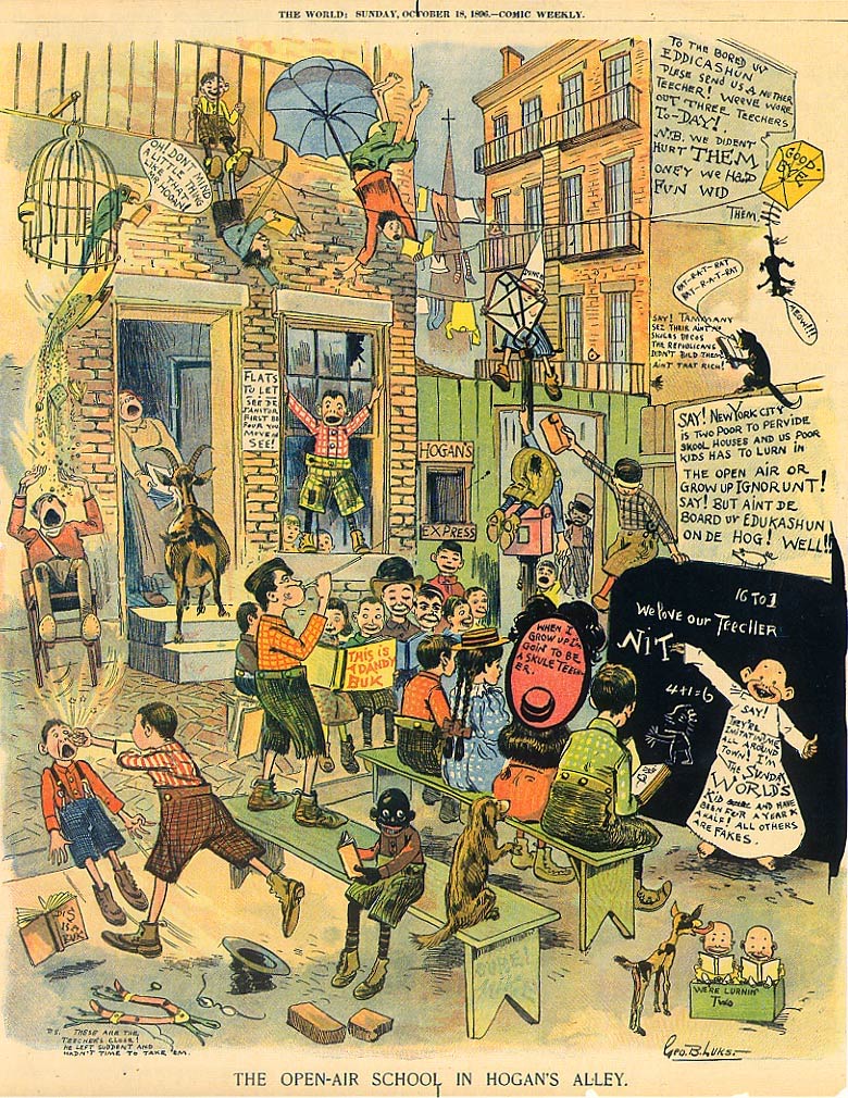 'Hogan's Alley' from 18 October 1896. The Nipper Twins appear on the bottom right.