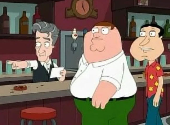 David Lynch appearing as a bartender in 'Family Guy'.