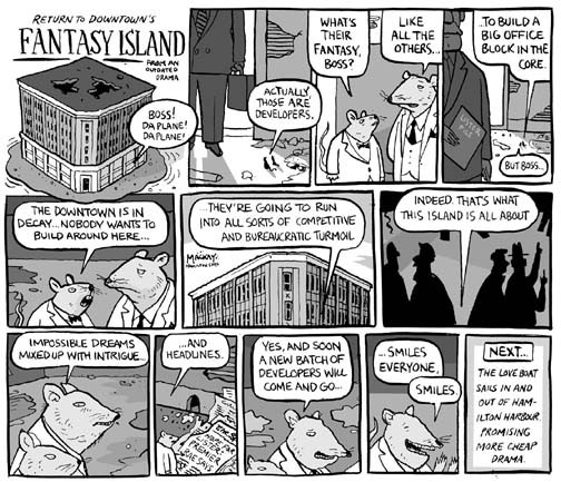 Cartoon of 12 April 2001 in comic strip format, parodying the TV series 'Fantasy Island'.