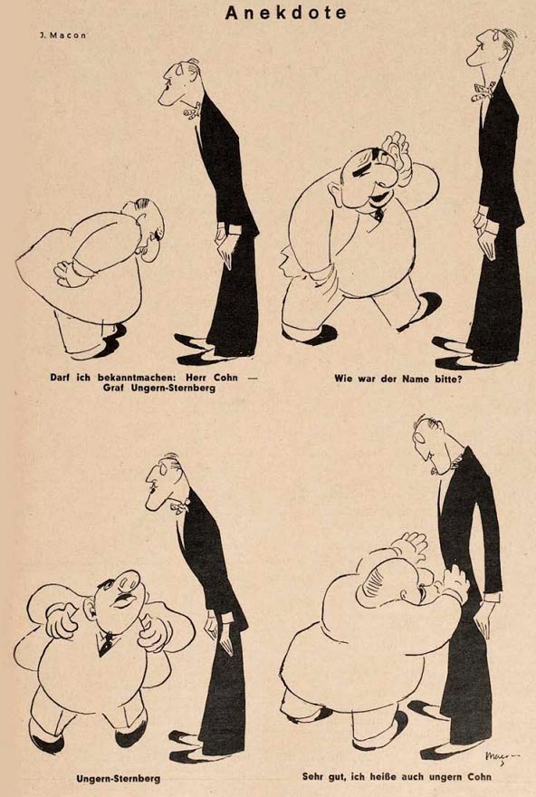 Julius Macon was a German artist and caricaturist. Originally from Munich, he studied Economics, but eventually chose a career in the arts. He was a contributor to the German satirical magazines Simplicissimus and Jugend in the 1920s, 1930s and 1940s. He also made illustrations for books by Jack London, Conrad Ferdinand Meyer and Otto Weckerlein. He was an artist for the local paper Tegernseer Tal from 1953.
