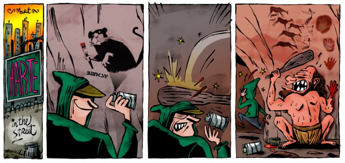 Another notable work by Yuls is 'Harte', which ran in El Churro Ilustrado and was published by Non Stop! Comics in Barcelona in 2006. He additionally cooperated on series like 'Viva La Gente!' (El Batracio amarillo), 'Rebeka, The Heavy with Freckles' (MC ediciones), 'The Adventures of Spain' (Panini Comics) and 'Mundo Japi' (Panini Comics). His cartoons and drawings additionally appear in different types of media, including the newspaper El Mundo, monografico.net, Radio Ethiopia and Maltravieso del comic.