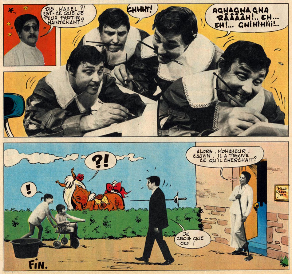 'Au Fil de l'Épée', photo comic by Gérald Frydman starring Mazel and Cauvin (Spirou #1873, 7 March 1974).