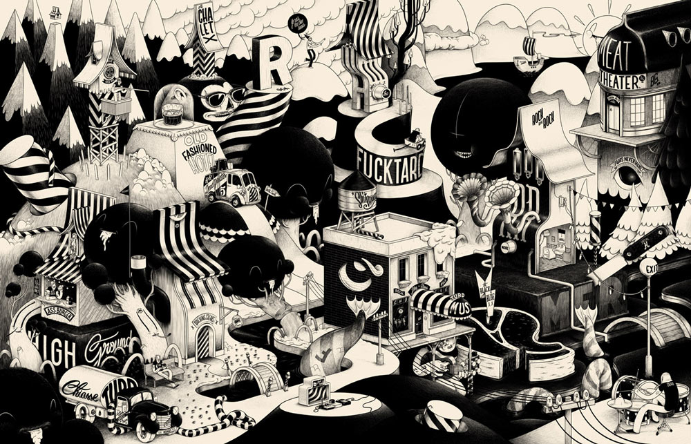 mcbess is the pen name of the French illustrator Matthieu Bessudo, who lives and works in London. Coming from the Cannes area, he attended the Supinfocom multimedia school in Arles, where he studied 3D animation. He graduated from Supinfocom with the short film 'Sigg Jones', which he made in cooperation with Douglas Lassance and Jonathan Vuillemin. The trio were subsequently hired as directors by The Mill, an Oscar-winning VFX company in London.