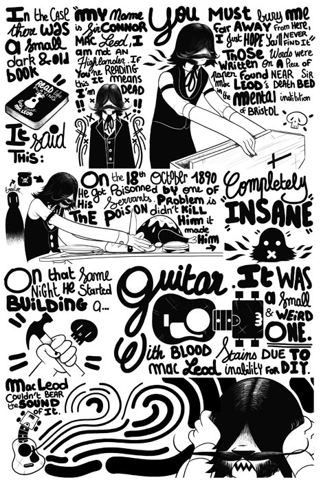 During his school period, he built his reputation by publishing work on several online boards such as Eatpoo and CafeSale. mcbess' surrealist drawings are filled with food and musical references, as well as characters inspired by old Fleischer cartoons. A collection of his drawings called 'Big Mother' was published by Nobrow in 2013. He is additionally a guitarist with the band Diztrait, and also performs with his own band The Dead Pirates.
