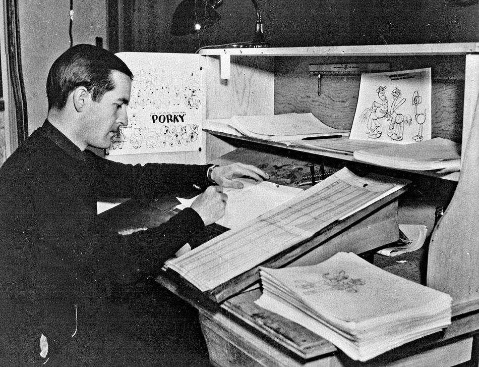 Bob McKimson (right) with voice actor Mel Blanc.