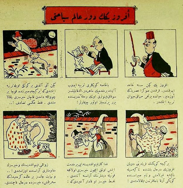 In Turkey, comics and cartoon art was introduced during the last years of the Ottoman Empire and the first years of the newly established Republic of Turkey (1923). Caricatures had appeared in papers and magazines ever since the second half of the 19th century. Pantomime or text comic strips came on with the launch of children's magazines like Çocuk Dünyası in 1913-1914. Some were very rudimental local productions, others simply traced from foreign papers. No authors are known, firstly since these early strips were made anonymously, but also because this period in Turkish comic history has not been fully explored. This is mainly due to the fact that most modern Turks can no longer read the Arabic script of these magazines. Cemal Nadir Güler is the first Turkish cartoonist whose legacy has not dissolved in history.