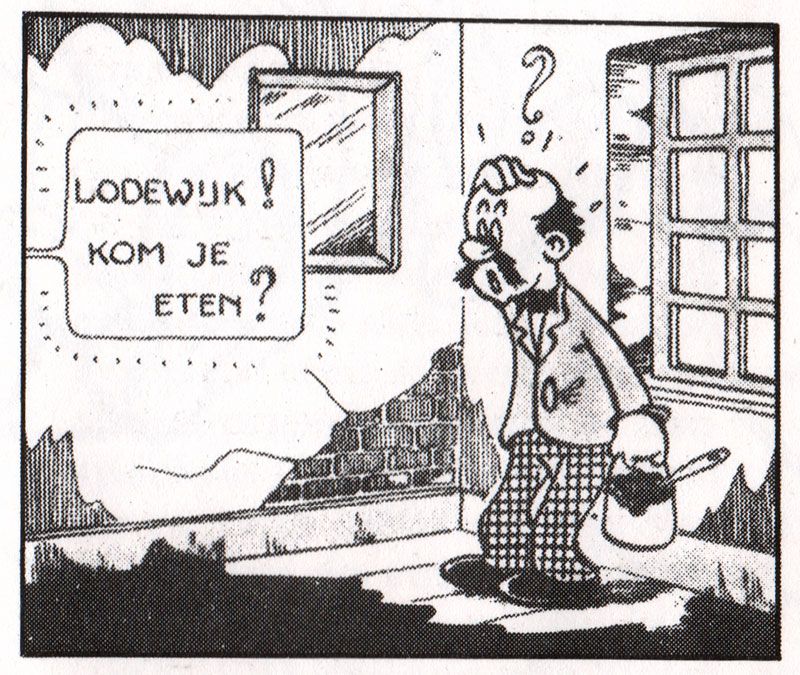 Among Hans Nije's other creations was the clumsy 'Lodewijk' (1946), whose gags appeared as a balloon comic in the magazine De Prins. The adventures of the greybearded Boudewijn with a pair of magical shoes were published under the title 'Boudewijn en de Toverschoenen' (1947) in newspapers like Helmondsche Courant. By 1955, the serial was still in circulation, this time reprinted in the Nieuwe Schiedamsche Courant.