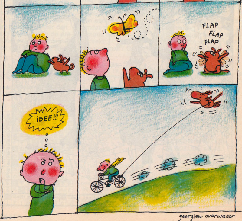 Georgien Overwater is a Dutch illustrator, who was born in 1958 in Gorinchem and who lives and works in Amsterdam. She studied at the Arnhem Art Academy between 1978 and 1983. She had an apprenticeship at the Toonder Studios, and made the comic strip 'Sjanie, Bart en Bob' for the back cover of Malmberg's Taptoe magazine around 1983-1984.