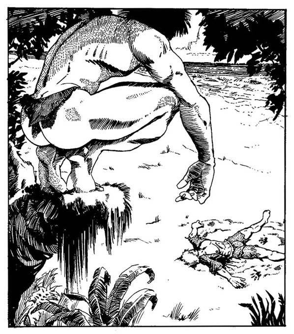Brad Parker, an artist originally from Omaha, Nebraska, was active as a comic artist for several gay publications during the 1980s. His stories appeared in Gay Comics and the 'Meatmen' anthology series, and also in magazines like Male Review and Stroke Magazine. Among the comic strips he created was 'Great Action Yarns' (in Male Review). He used the pen name Ace Moorcock for his more explicit works, such as 'The Erotic Adventures of Jason' and 'Bedwyr'. Parker eventually moved to Hawaii, where he dropped his comic activities and focused on creating work inspired by Hawaiian tikis.