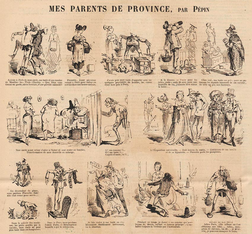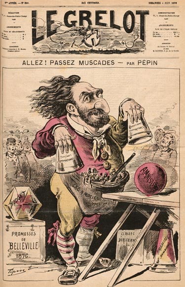Pépin began his career as a caricaturist with magazine La Lune in the 1860s. He later also worked for other satirical magazines, such as L'Éclipse, Le Journal amusant, Le Grelot and La Rue. He made most of the cover illustrations for Le Grelot between 1876 and 1879. He subsequently became a regular artist for the new magazine Le Lampion de Berluron in 1879. Guillaumin became owner and editor of this satirical magazine two years later, in which he expressed a militant anti-clericalism.