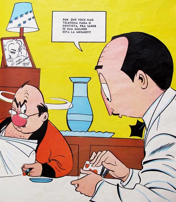 'O Amigo da Onça'. Translation: "Why don't you phone the dentist to see if your wife is actually there???".