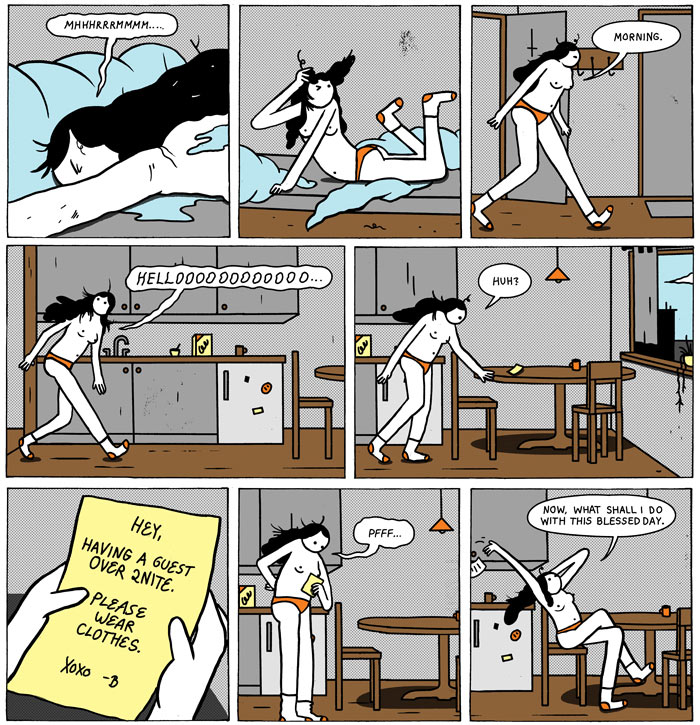 Elizabeth Pich is a comic artist living and working in Saarbrücken. She is the author of the comic series 'Fungirl', and co-author of the ongoing webcomic 'War and Peas' with Jonathan Kunz. Pich and Kunz met at art school, and began their collaboration in 2011. What started out as a blog for silly doodles and nonsensical comics, eventually turned into a weekly comic strip, under guidance of comic artist Barbara Yelin, who was a guest lecturer at the time. 'War and Peas' strips give a funny look at different types of situations, mostly dealing with unfulfilled desires, humans and technology, and generally have a sad twist ending. The authors write together and usually alternate drawing.