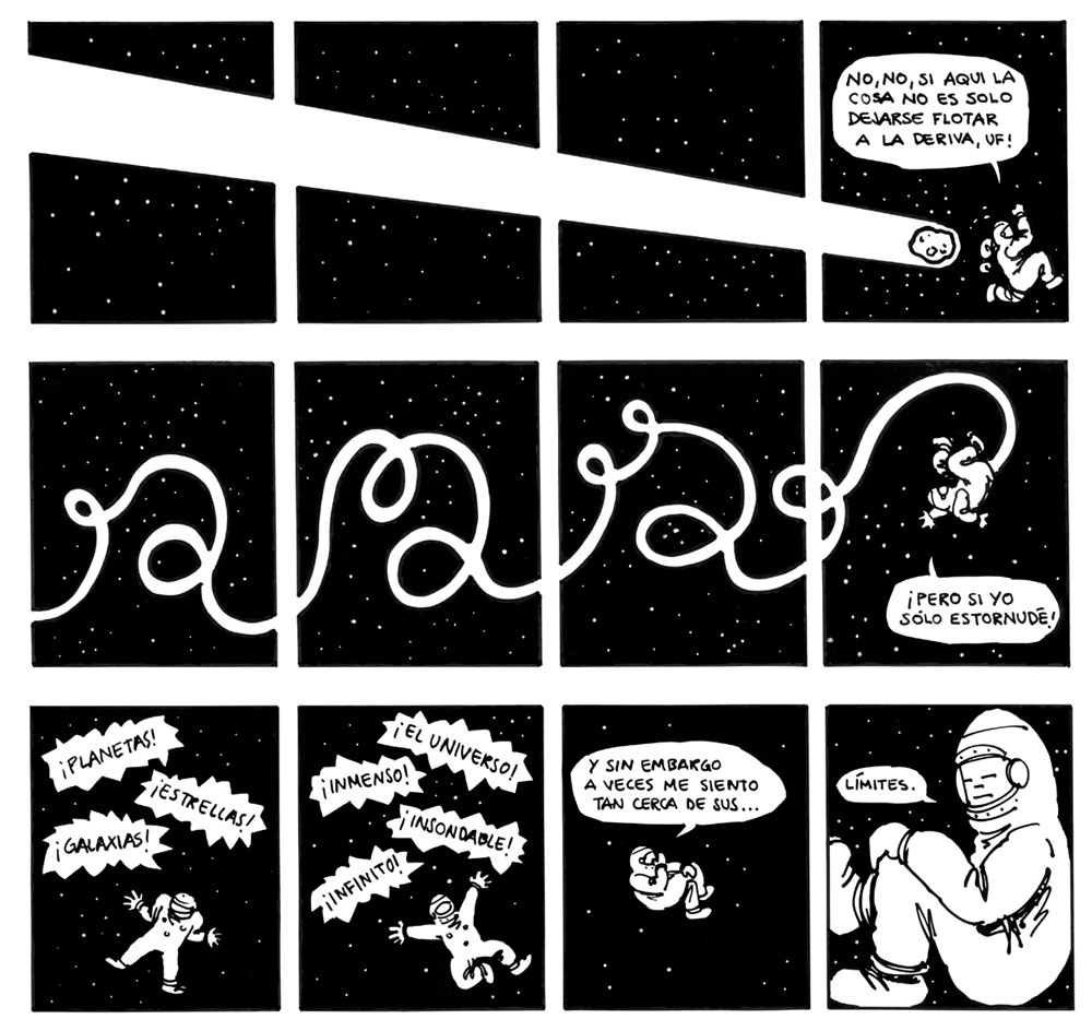 Jorge Quien's first comics work was 'Andrei' (2000), a comic strip about a lonely Russian cosmonaut, published in the Chilean newspaper El Metropolitano. His comics, illustrations and photo stories have appeared in magazines like Ilustración Argentina (Buenos Aires), Patrimonio Cultural (Santiago) and The Clinic (Buenos Aires) and the indie counterculture magazine TrauKo Cómics. His comic stories have also appeared in South American anthologies like 'Ojo de Vidrio' (2006, a compilation of contemporary comics from Chile) 'Monos Serios' (2008) and Fierro (Argentina), as well as Stripburger from Slovenia. He also publishes comics online, for instance on the Revista Kamandi portal or in the digital contemporary art magazine Artishock. Quinén has served as editor of Niños a Tomar Once!!, a free self-publication mixing comics, children's graphics, literature and contemporary art.