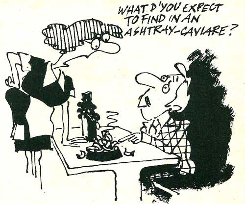 Raymonde's cartoons also ran in Catering Times, Reader's Digest, Time & Tide and High Life, the house magazine of British Airways. For Catering Times, he drew the one-panel comic 'Mr. Meddle', about a customer who is always complaining about or interfering with other people's affairs.