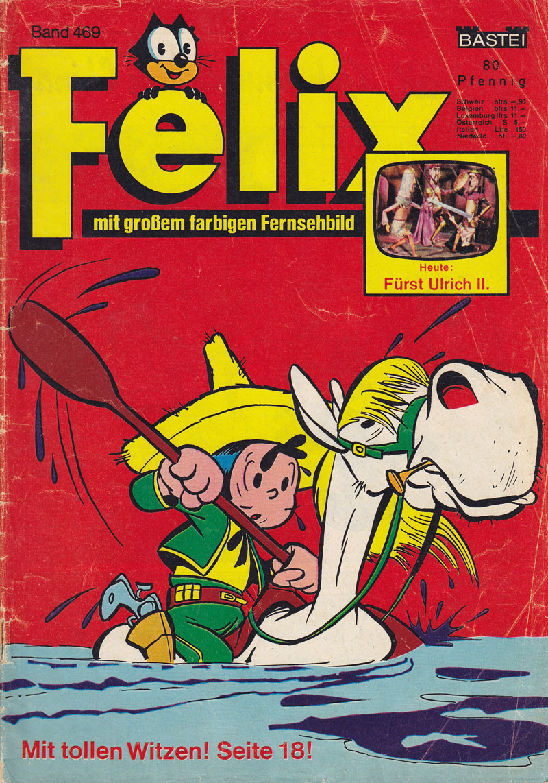 In the second half of the 1960s, Reindl Dachsel became prolific suppliers to the magazines of Bastei Verlag. In Felix magazine, they continued their earlier 'Pablo und Rosalia' feature, and provided several stories of magazine's title comic, which was based on the Joe Oriolo design of Pat Sullivan and Otto Messmer's cartoon cat Felix. Under their Atelier's supervision, Heinz Körner developed the characters of the funny animal feature 'Wups und Waldi' (1966-1968), which was subsequently drawn for Felix by Franz Roscher for two years.