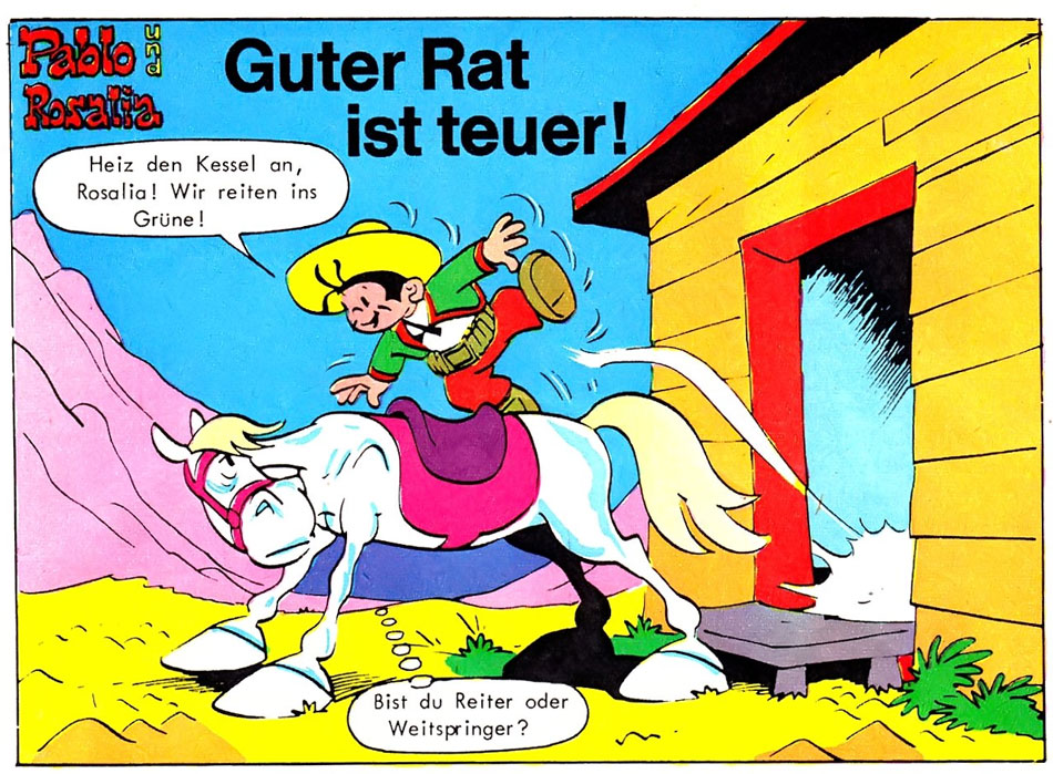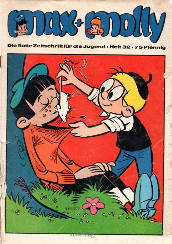 In April 1964, the first weekly issue of Max + Molly appeared, strangely enough with issue number #20. The title characters were two skinny teenagers, created by Werner Hierl, but initially drawn by a female artist from Strasbourg, known as "M. Becker". Since most of the art staff came from Kauka, several of the features had a strong Kauka vibe, for instance 'Plop' by Franz Roscher and 'Hasi' by Branco Karabajic. Reindl and Dachsel themselves are credited with the feature 'Pablo und Rosalia', about a smart Mexican and his quirky mare. When the first issue of Max + Molly appeared, Kauka was fully surprised and, to say the least, not amused. Especially since the early issues also contained material by Walter Neugebauer, one of his most loyal co-workers, who was still working for him. As it turned out, the latter was unaware of the inclusion of his work, and it is believed the original pages were taken from the Kauka offices by Dr. Kirchdürfer. With the remaining staff he had left, Kauka desperately tried to fill his new Fix und Foxi issues, but his lawyers assured him that he could not take action against his former artists, saying: "They're freelane artists... and not serfs! Make them better offers, and get them back!"