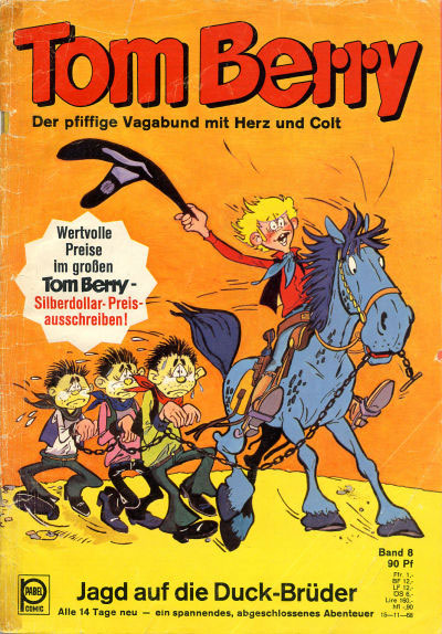 For Pabel-Verlag, Max Reindl and Josef Dachsel were part of the early production team of the humorous western comic 'Tom Berry - Der pfiffige Vagabund mit Herz und Colt' (1968-1972). Initially, the issues were produced alternately in West Germany (Reindl-Dachsel) and Spain (Carlos Giménez). After a while, full production was handled by Studio Ortega in Spain, which employed artists like Carlos Gimenéz, Francisco Díaz Rojo, José Castillo, Alfonso Borillo, Jaime Mainou and Jesús Blasco. Eventually, the 'Tom Berry' series was restyled by the Belgian artist Karel Verschuere and his studio, who gave the character a more realistic appearance. By the request of readers, this was later rectified again.