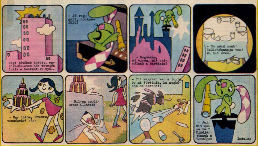 Comic strip of 'A Kockásfülű Nyúl', published in the Tükör newspaper (1975).