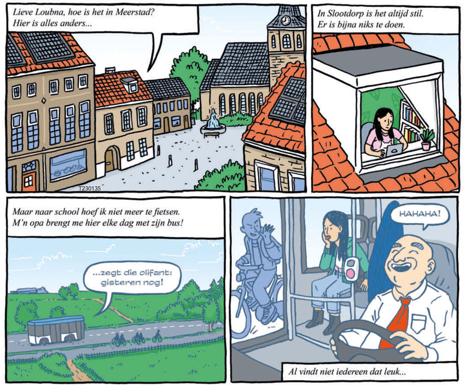 Combining her two studies, Ringelding has regularly created comics related to language or literature. Between 2016 and 2021, she wrote and illustrated book reviews for the literary paper Boekenkrant under the banner 'Lees&Teken'. For the children's magazine Brul!, she has made a number of comics about etymology, and for the publisher Loopvis, she has written and drawn mini-summaries of literary classics. From 2023 on, Ringelberg created stand-alone comic stories for the girls' magazine Tina, working from scripts by Johan de Rooij, Frank Jonker and Betje Ton. With Johan de Rooij, she has also made the 'Jantje' series of mini comics (2016), containing parodies of children's picture stories.