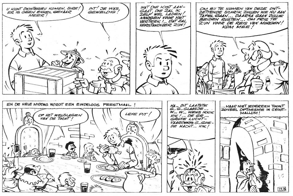 In August 1966, Roch's adventure comic 'Les Bouteilles du Roi m'Bouli', starring the character Pit, appeared in the Brussels monthly Samedi-Jeunesse. In the following year, the story also ran in Dutch under the title 'De Flessen van Koning M'Boeli' in two issues of Ohee, the children's supplement of the Flemish newspaper Het Volk.