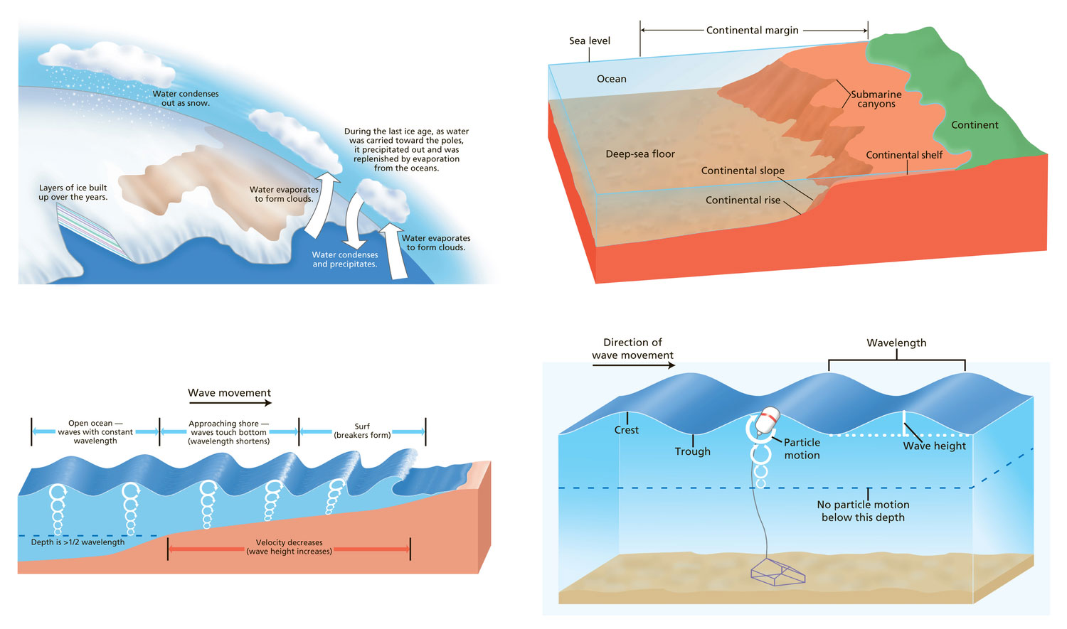 Technical diagrams for the book 'Oceans - How It Works' (Cavendish Publishing).