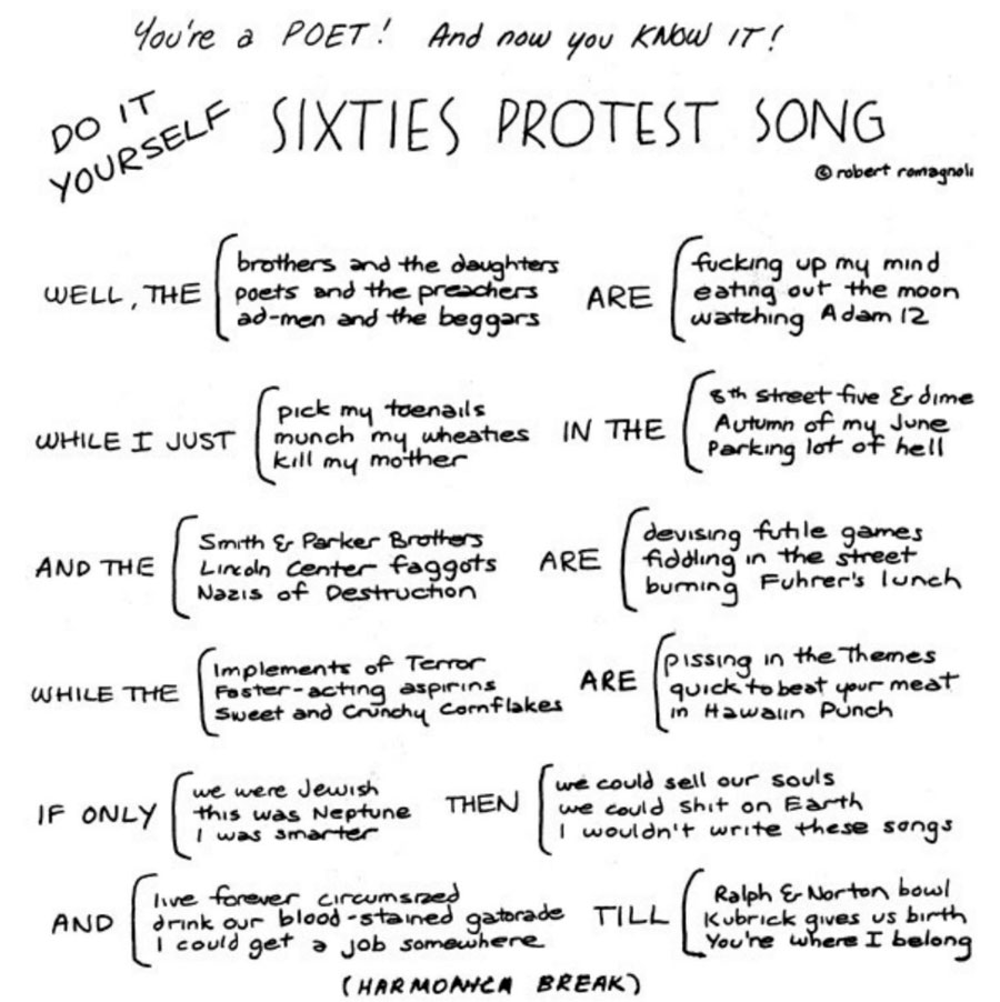 Romagnoli's 'Do-It-Yourself Sixties Protest Song' from Punk #1 (1976).