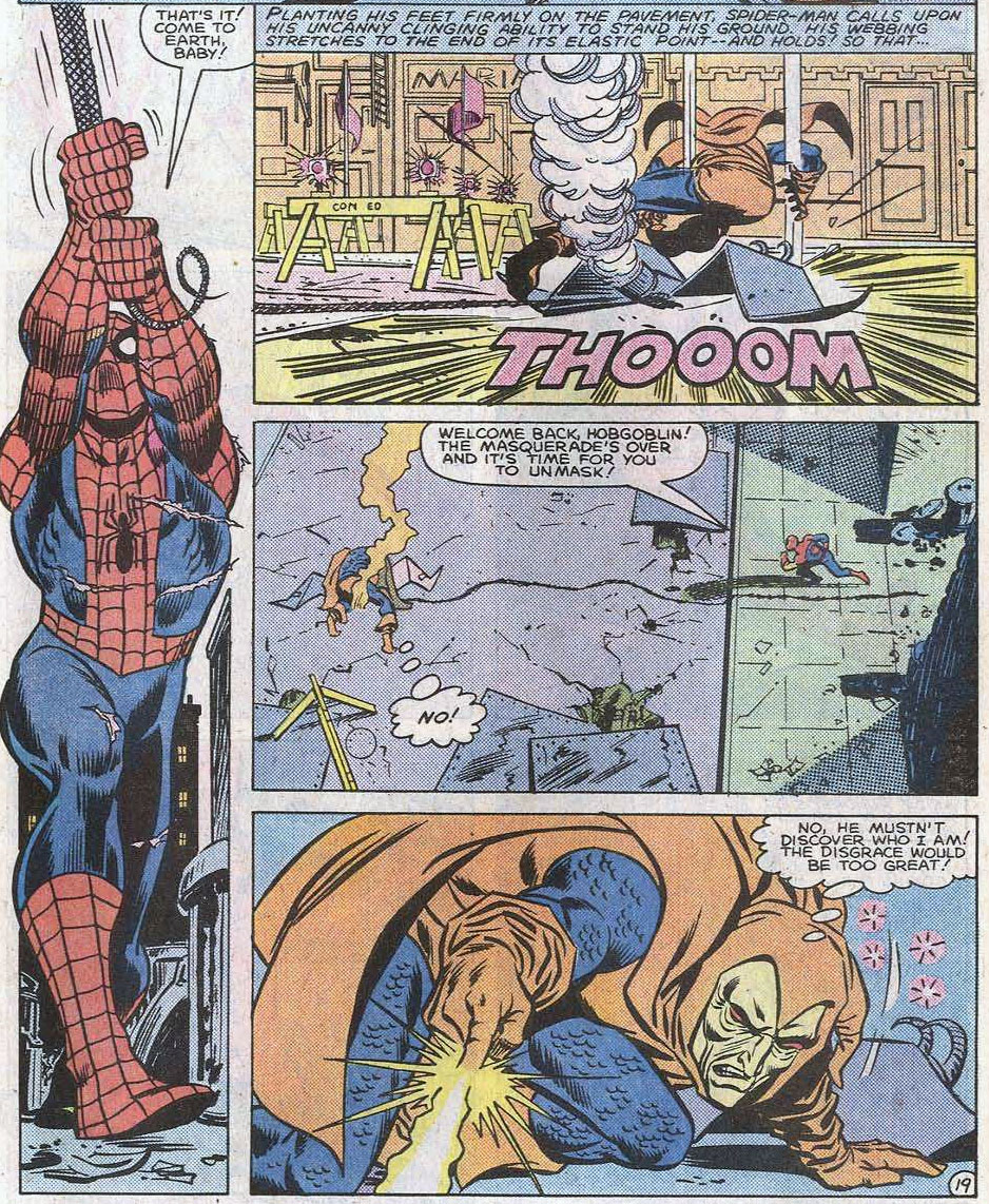 'Now Strikes the Hobgoblin!' (The Amazing Spider-Man #239, 1983), pencils by John Romita Jr. and Frank Giacoia.