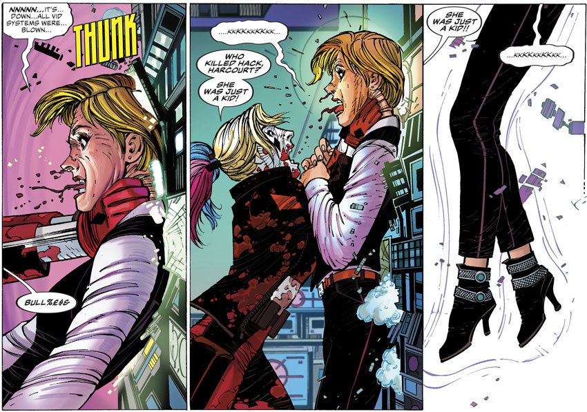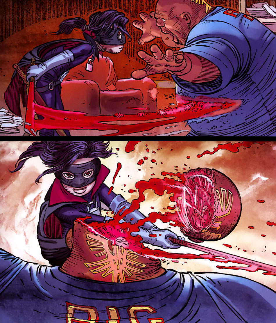 Because of their over-the-top ultra violence, often aimed at underage characters, the 'Kick-Ass' comic books caused controversy, but also quickly gained a cult following. The first eight-issue miniseries was followed by the seven-issue 'Kick-Ass 2' (2010-2012) and eight issues of 'Kick-Ass 3' (2013-2014), as well as a five-issue 'Hit-Girl' spin-off (2012-2013). In 2018, the series was picked up by Image Comics, which reprinted the original series in four paperback graphic novels under the banner 'Kick-Ass: The Dave Lizewski Years'. Millar and Romita made six issues of a new 'Kick-Ass' series (2018-2019), focusing on a new junior mob fighter Patience Lee. From issue #7 on, this series was taken over by writer Steve Niles and artist Marcelo Frusin. That team also produced the next series, 'Kick-Ass vs. Hit-Girl', published between November 2020 and March 2021. In addition, Image Comics launched a separate 'Hit-Girl' series (2018-2020), which had a successive change of writers and artists for each story arc.