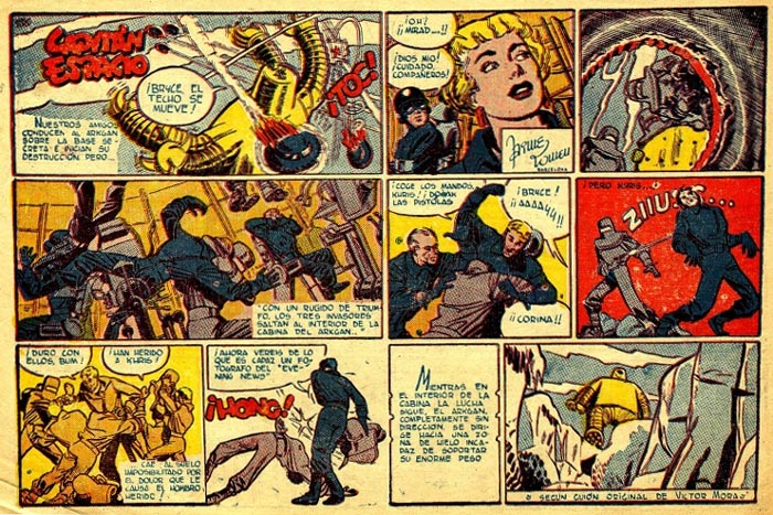 He also worked for Bruguera's Spanish publications, creating 'Bisonte Gráfico' for the Colección Dan in 1955-56, as well as cartoons and illustrations for Pulgarcito magazine. In Spain, he was mainly drawing science fiction and espionage serials for serials published by Toray in the 1950s and 1960s. These included 'El Mundo Futuro', 'Átomo Kid', 'Brigada Secreta', 'Espionaje', 'Las Enfermeras' and 'Robot 76'. He was however also drawing for the publisher's romance title Rosas Blancas. In France, his artwork appeared in SF titles like Météor and Spoutnik, published by Artima in the 1950s.