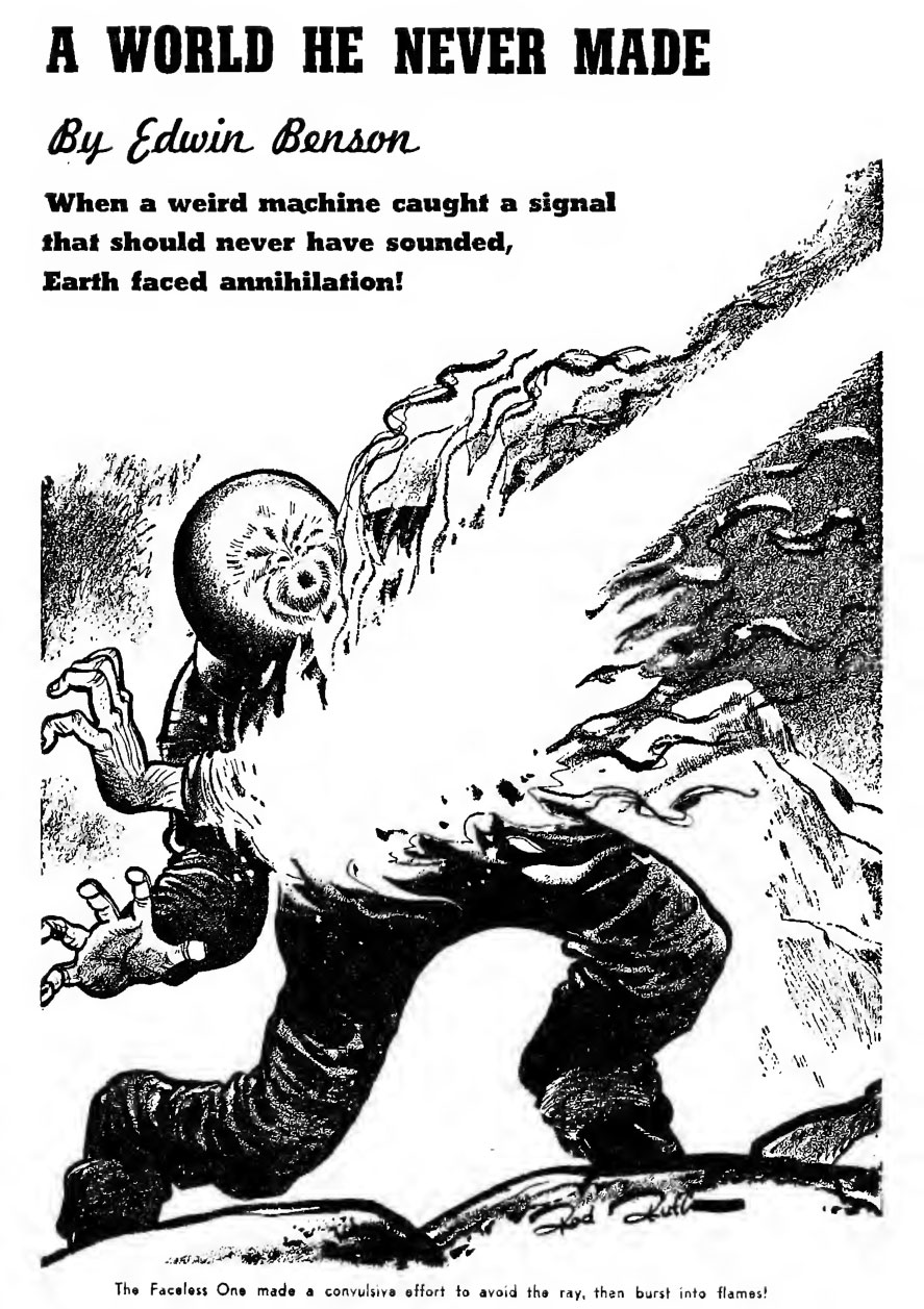 Rodney McCord Ruth was born in 1912 in Benton Harbor, Michigan. He went to school in New York City and then found work with the publishing company Street and Smith. He studied at the Chicago Academy of Fine Arts, followed by the Frederick Mizen School of Arts and the Institute of Design. His first job was with the Chicago-based publisher of pulp magazines, Ziff-Davis. Between 1940 and 1951, Ruth's illustrations appeared in pulps like Amazing Stories, Weird Tales and Fantastic Adventures.