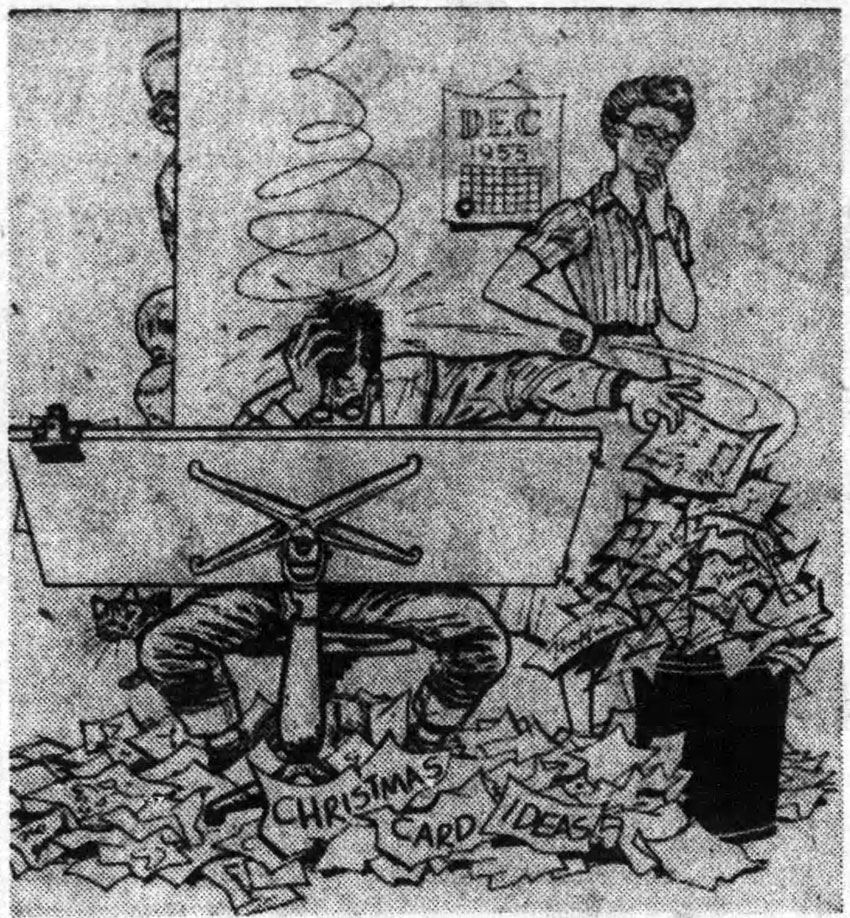 December 1955 holiday season card by Rod Ruth and the Baers, published in the Washington D.C. Evening Star on 20 December 1955.
