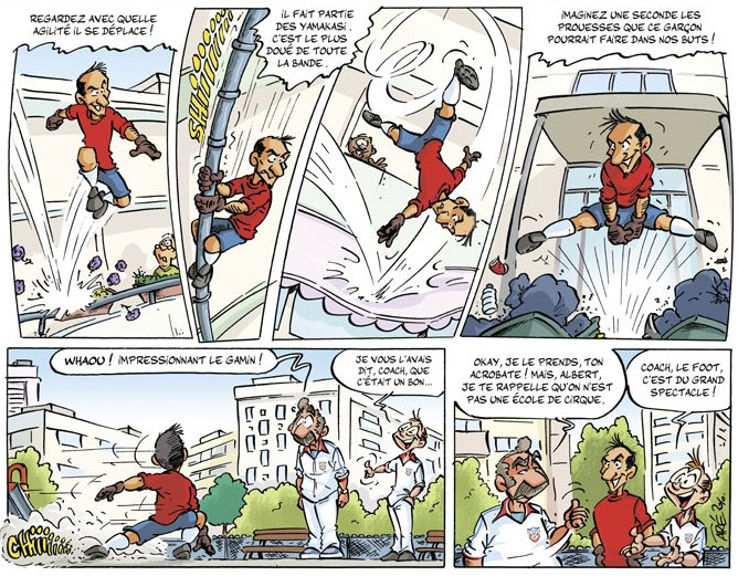 In 2007, Ruyer launched his solo humor comic 'La Tribu des Insu'Portables', of which Vents d'Ouest published two books. It was followed by another humour comic, this time dealing with soccer, 'Foot Goal'. Four books were published by Vents d'Ouest between 2009 and 2012. Soccer was also the theme for 'Carton Rouge', another humour comic book by Aré (Vents d'Ouest, 2014). In that same year, he also made two one-shots with writer Olivier Petit: 'Nous, les footeux de district!' and 'Nous, Les Purs Motards!' for Éditions Physalis.