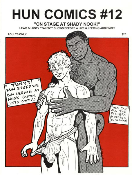 Bill Schmeling has been active as an American cartoonist in Portland, Oregon, since the 1960s. He initially worked for magazines like Physique Pictorial under the pen name Torro, but later became known as "The Hun". Under his pen name, he made a couple of pornographic gay comic books, full of masculine blokes, brutal and violent sex and human fluids, that followed in the wake of the underground success of Tom of Finland. Returning characters are the prisoner 'Big Sig' and the barbarian 'Gohr'. He passed away in his hometown Portland, Oregon, in September 2019.