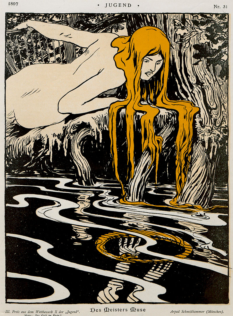 Arpad Schmidhammer was born in 1857 in St. Joachimsthal, Bohemia, a region in today's Czech Republic. He was the only son of artist Josef Schmidhammer and his wife Carolina. He studied art in Graz, Vienna (both in Austria) and Münich, Germany. By the mid 1890s, his cartoons appeared in Fliegende Blätter and from 1896 on he was one of the first cartoonists and illustrators in the popular Münich youth magazine Jugend, launched that same year. Schmidhammer's art also appeared in the anthology 'Knecht Ruprecht' (1900) and the magazine Jugendland.