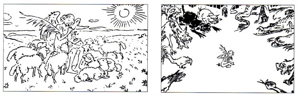 In 1918, the First World War came to an end. Peace returned and the League of Nations was established in 1919 to keep it that way. Yet Schmidhammer feared the organization was essentially powerless. He made a two-sequential cartoon, 'Der Völkerbund... und wie er in Wirklichkeit aussieht' (1920), which became iconic. The first panel shows what the League of Nations imagines itself to be: an angel playing the lute in a grass field, while various sheep gather around to listen in harmony. The second panel shows the actual situation: a tiny pathetic peace angel is surrounded by beasts bound to attack her. Indeed, in only two decades time the Second World War broke out, despite all attempts of the League of Nations to prevent it. Luckily, Schmidhammer never lived to see his prediction come true, as he passed away in 1921.