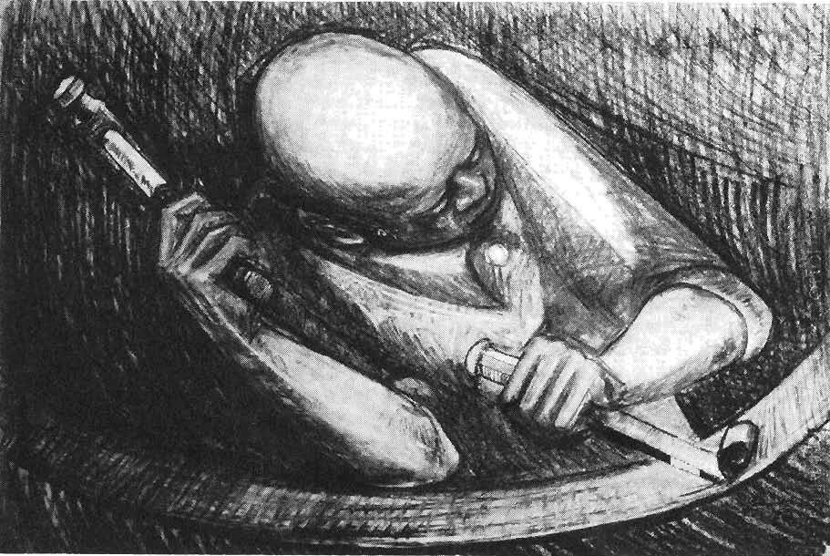 In 1976, the South African government announced that all school lessons should now be given in Afrikaans. This not only put black students who didn't know the language at a serious disadvantage, but Afrikaans was also regarded as the language of the white minority rulers. In Soweto, pupils protested and boycotted their school, which led to white police forces suppressing the riots with brutal, bloody force. The Soweto Uprising made global headlines and increased the international anti-apartheid movement. Together with Fikile Magadlela, Percy Sedumedi organized an illegal exhibition, where they displayed drawings criticizing the violence in Soweto, literally using their own blood as paint.