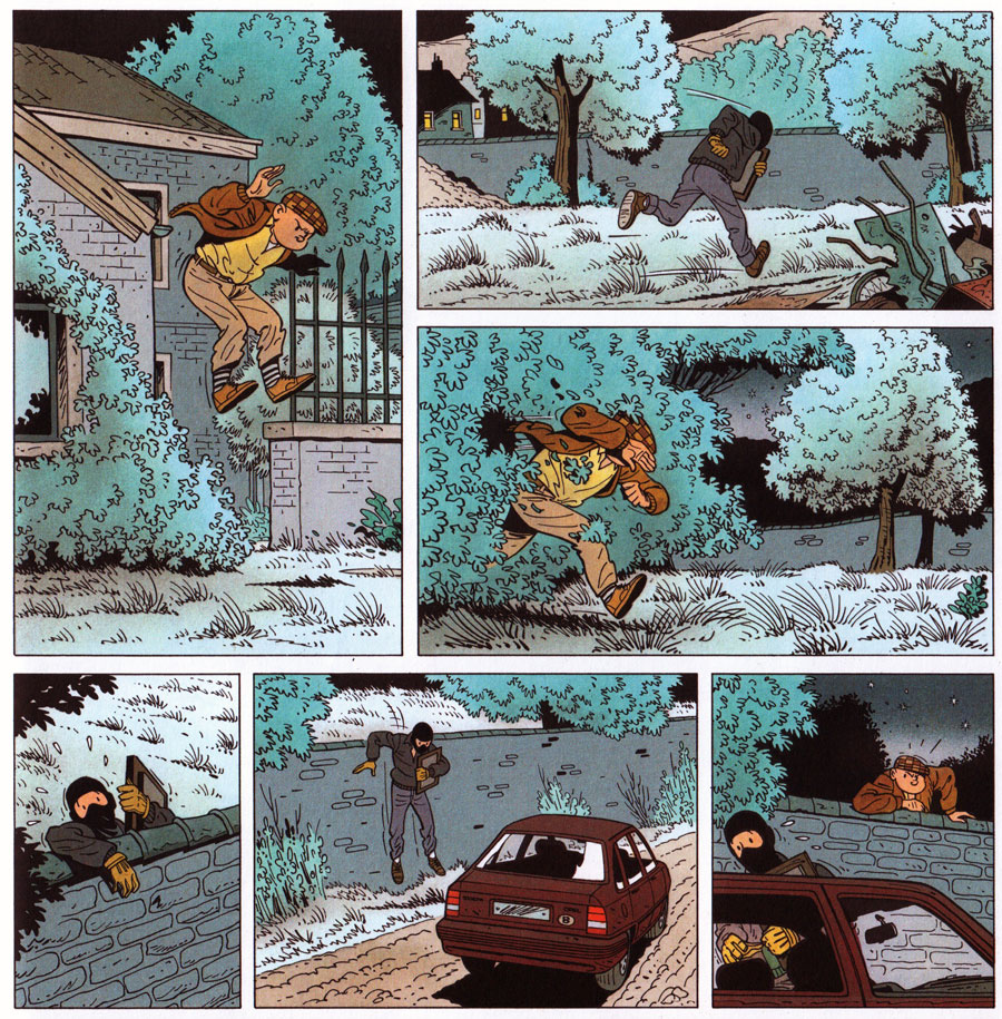 Together, Alain Sikorski and Denis Lapière returned to the detective stories of the Tillieux era, but dropped the science fiction and fantasy elements. Also switching to a more realistic and cinematographic art style, the adventures of the baldheaded Tif and the bearded Tondu became more grounded in reality, inspired by Georges Simenon novels. Running their own urban detective agency, the two heroes, accompanied by their new assistant Mona, investigate down-to-earth cases involving fraud, forgery, arson, murder and kidnapping. Adding to the realism was the comic's switch to more aggressive storytelling, not only in the action sequences, but also in the character interactions between the two bickering crimefighters.
