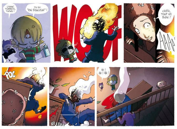 Stan Silas learned the finer points of the comics craft through publishing on his blog, which he started under the pen name Sansanx in 2006. His debut comic book, 'Meurtres en trois leçons', was published by Danger Public in 2007. It was the first book starring the character of Norman, a young serial killer who has reappeared in the manga-inspired comic series 'La Vie de Norman' at Éditions Makaka since 2011. For Makaka, Silas has also made 'Sylvaine - Itinéraire d'une enfant pauvre' in 2013. Silas' other comic series is 'Biguden', a comic set in Brittany, published by EP Media from 2014 to 2016.