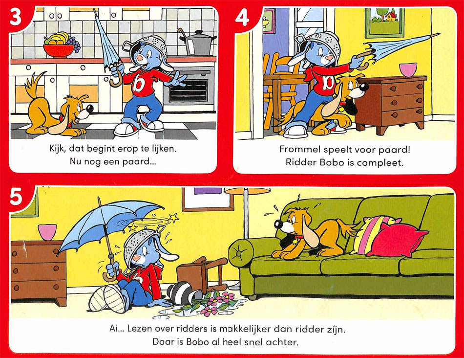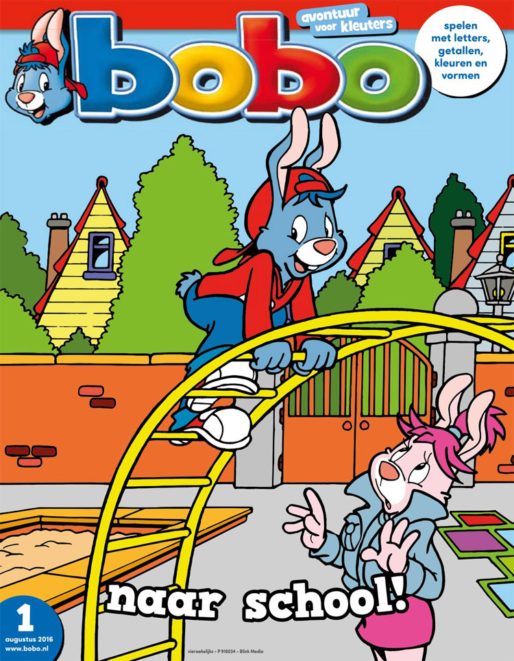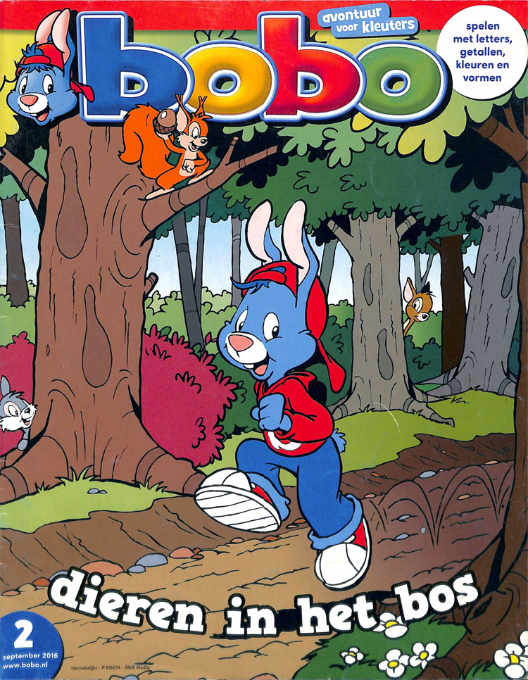 Since the early 2000s, the Tekenteam studio has been responsible for the majority of the magazine's artwork. After a while, Tekenteam's art director Richard Bijloo assigned Mark Spruijt as Bobo's regular illustrator. At first, Spruijt did the cover illustrations and activity pages, while the Brazilian Magic Eye Studio's drew the back cover picture story starring Bobo and his bunny friends. Since the early 2010s, Spruijt also draws the back cover feature, by then centered about Bobo's dog Frommel and written by Maya Frijn. Over the years, the editors commissioned Tekenteam to modernize the character through several redesigns, starting with replacing his traditional green quiff and red shirt with a yellow baseball cap and red hoodie. After 2009, Bobo's design was brought back to the colors red, blue and white: his cap went from yellow to red and his hair changed from green to blue.