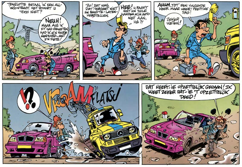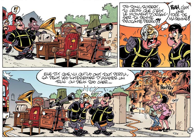 Besides Spirou, Stédo also published in Fluide Glacial, for whom he drew 'Monde de Micheline'. He has worked on several humor comics for Bamboo since 2002. His first book for Bamboo was 'SOS Shobiz' in cooperation with Erroc and Olivier Sulpice in 2002. He makes 'Les Pompiers', a humorous series about a fire brigade, with Christophe Cazenove since 2003, as well as 'Mafia Tuno' with Hervé Richez since 2011.
