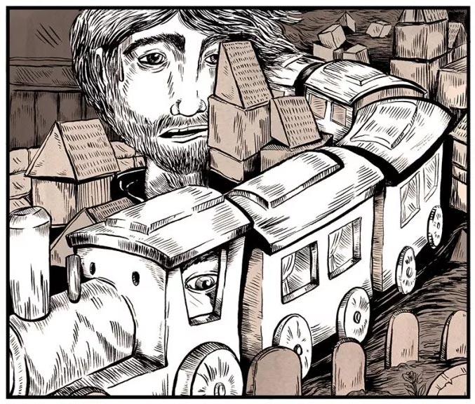 With her inventive imagery, Stok aims to provide "philosophical observations of the human identity with a clear fascination for when the psyche fails us as a single being or as a group". Several of her comics play with loops and repetition, such as the 'Broken Record' series. Stok made a comic strip based on the song 'The Great Farewell' for the companion book of singer/songwriter Mark Lotterman's 'Holland' album (2017). She was also one of the artists adapting a song from Wende Snijders' 'MENS' album into a comic for the 2018 Cross Comix festival. For the same festival, Stok participated in the Nietzsche-based feminist exposition 'Stripped!', curated by Merel Barends. Since 2014, she has been working with Bruno Xavier da Silva on murals and joint exhibitions under the moniker of "Trompette de la Mort". Between 2015 and 2018, the artist also had a partnership with Marcel Ruijters, with whom she made a series of large ink drawings under the "Juhla" banner.