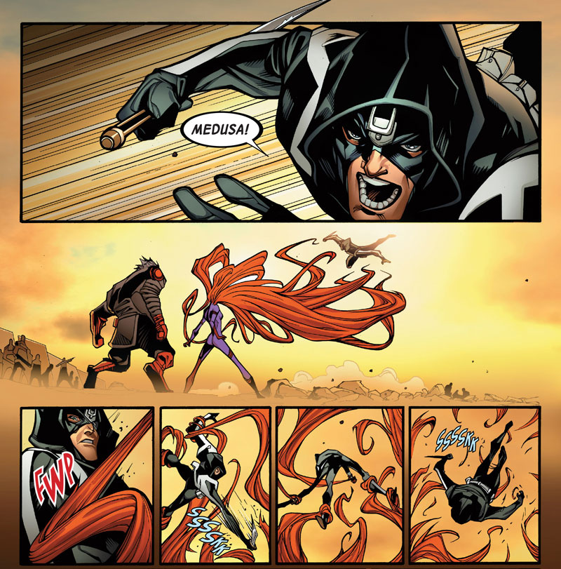 While continuing his animation work, Timms got the opportunity to return to his original passion in the early 2010s. While exhibiting some of his work at the Boomcom in San Jose in 2011, his work was noticed by American comic book editor and writer Jimmy Palmiotti, who introduced him to Marvel and DC Comics in the USA. His first work was penciling a story with the mercenary antihero 'Deadpool' for Marvel Comics in 2014. Another job for Marvel Comics was a special with Marvel's 'Nova' (2014), which was part of the crossover storyline 'No End In Sight' with 'Uncanny X-Men' and 'Iron Man', written by Sean Ryan. He then drew the five-issue mini-series 'Inhumans - Attilan Rising' (2015) by Charles Soule, with inks by Roberto Poggi, starring the superhero team created originally by Jack Kirby and Stan Lee.
